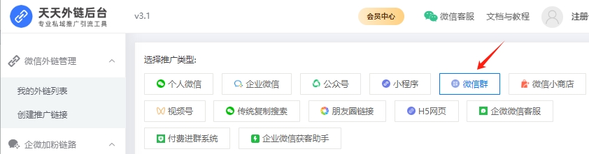 “天天外链”是一款专为微信引流设计的一键跳转工具,其最大的亮点是可以实现链接到微信群二维码的无缝衔接。只需简单几步设置,就能让任何链接自动跳转至指定的微信群二维码页面。无论是企业官网、社交媒体广告,还是线下宣传物料,都可以通过“天天外链”引导用户进入微信群,从而达到精准引流的目的。