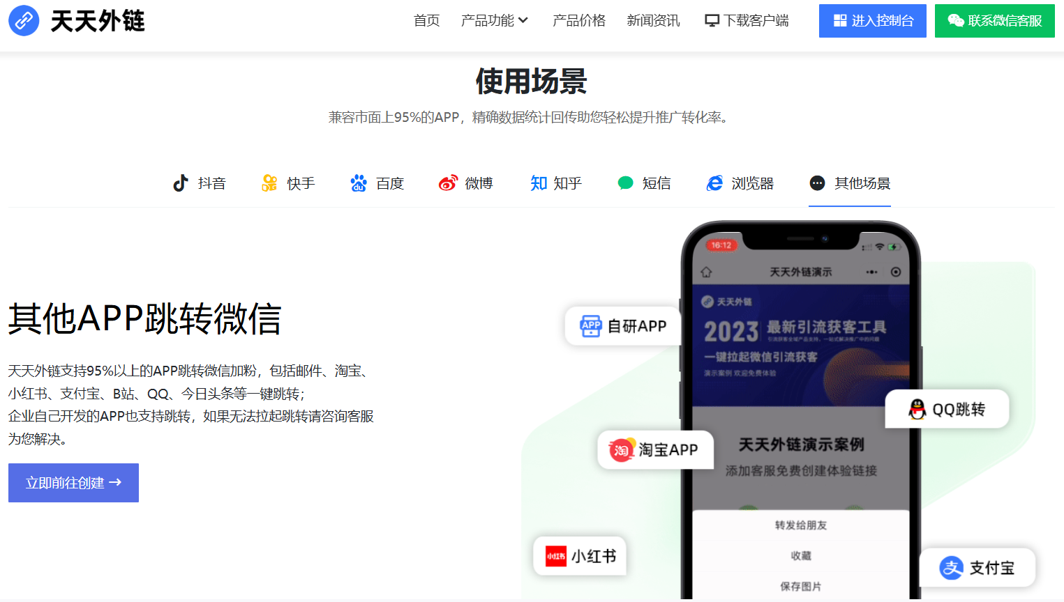 在流量日益珍贵的当下,头条平台的高质量用户是企业的重要资源。然而平台拦截导致跳转困难,用户手动复制、切换应用等步骤造成大量流失。针对此痛点,天天外链提供专用跳转链接,用户点击即可自动唤醒微信,直达公众号、个人号或小程序,实现一键顺畅跳转。工具还配备实时数据看板,精准追踪点击与转化效果,帮助优化投放策略,显著提升引流效率与私域转化能力。