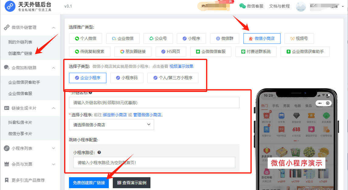在平台主界面选择"跳转小程序"功能,进入链接创建页面。这里需要填写目标小程序的关键信息:微信小程序的原始ID、页面路径以及自定义参数。为确保跳转精准性,建议仔细核对每个参数,并可设置动态参数以便后期数据追踪与分析。