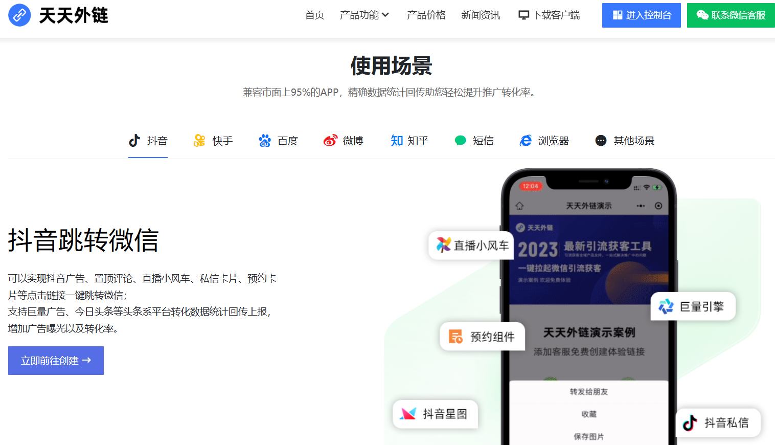 登录天天外链后台,点击“创建外链”并选择“个微”类型。按照提示填写引导文案,上传准备好的微信二维码,系统即刻生成专属跳转链接。整个过程简单快捷,无需技术背景。
