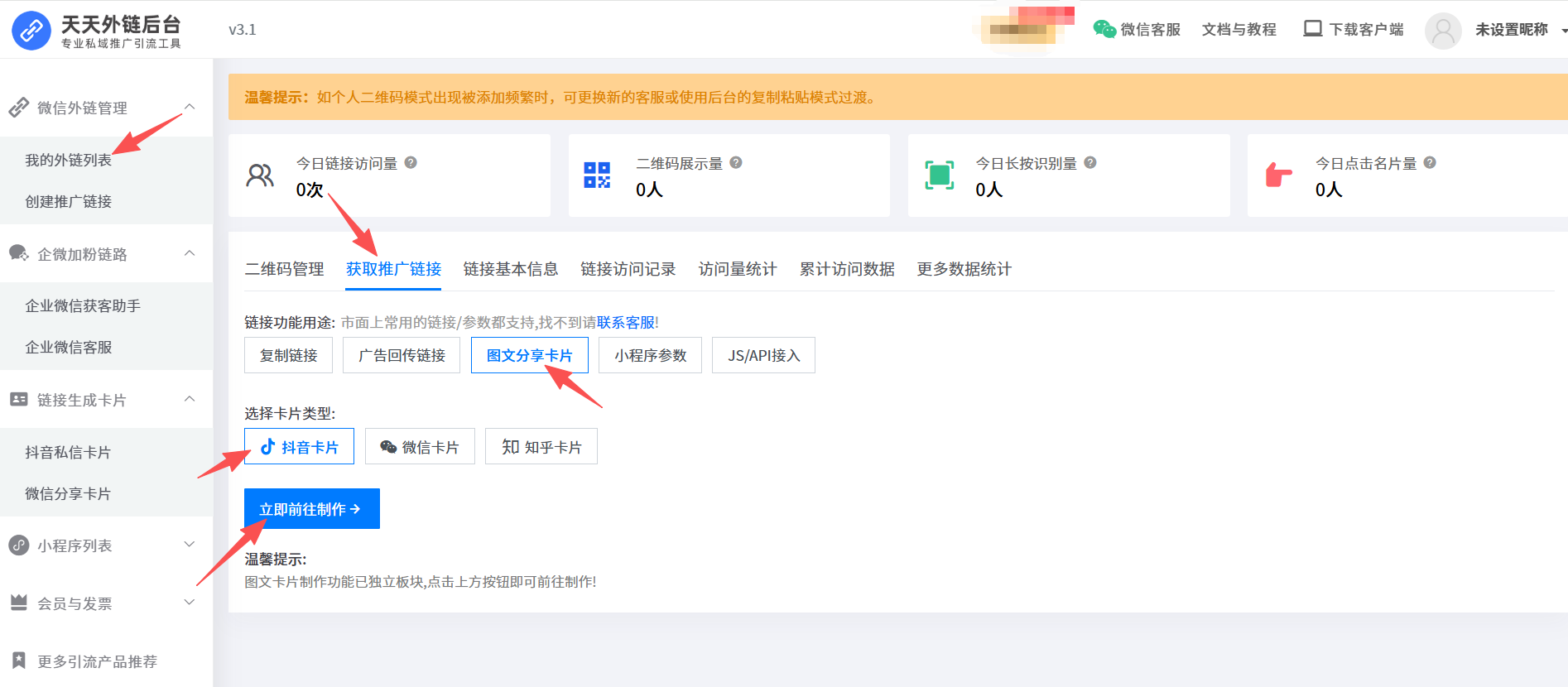 使用天天外链完成从抖音到企业微信的跳转,操作流程并不复杂: