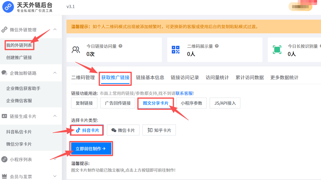 借助天天外链,实现抖音视频跳转企业微信的操作极为简单,无需任何技术基础。